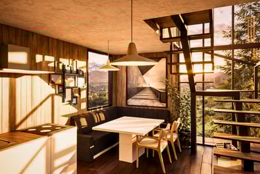 Diseño cálido y funcional, rodeado de bosque, luz natural y vistas únicas a la montaña.
