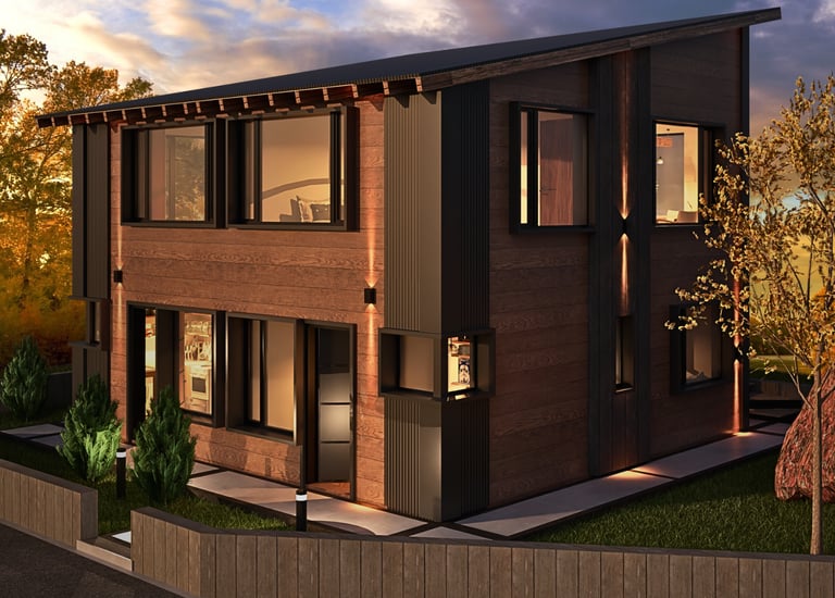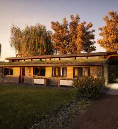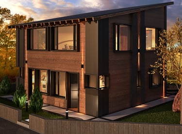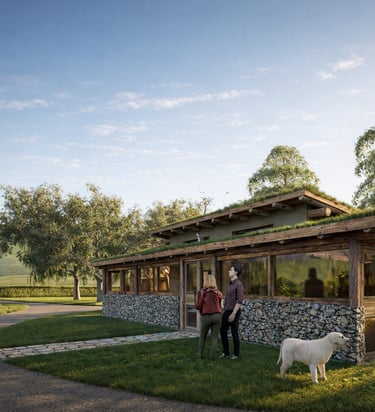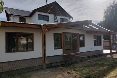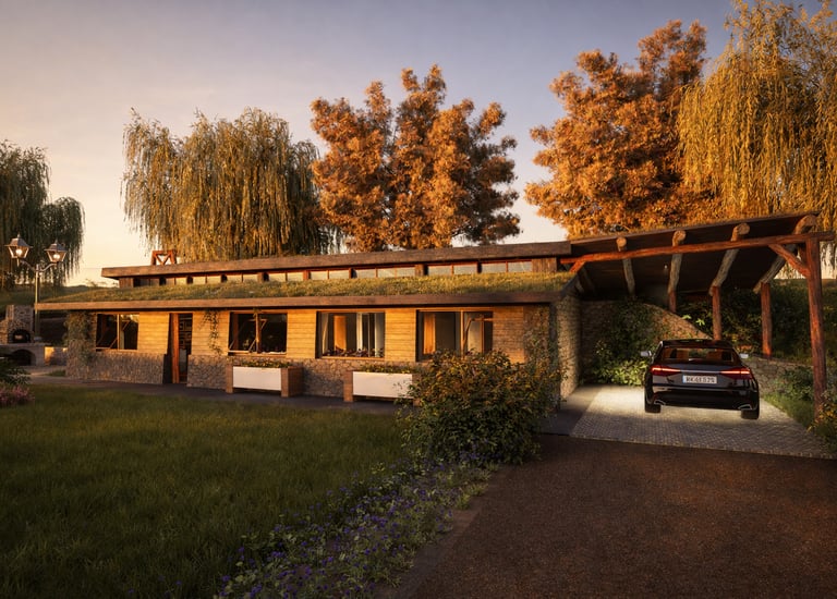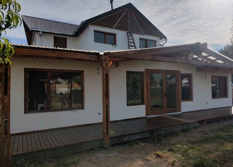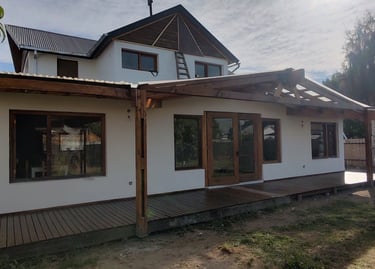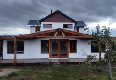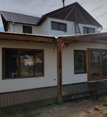 vivienda sustentable ha sido concebida como una extensión natural del entorno, priorizando la integración paisajística, la eficiencia energética y el confort contemporáneo. Implantada cuidadosamente sobre el terreno, su diseño dialoga con la vegetación existente, la topografía y la orientación solar, logrando una arquitectura que respeta y potencia el paisaje patagónico.