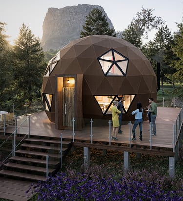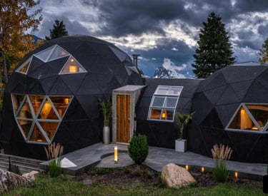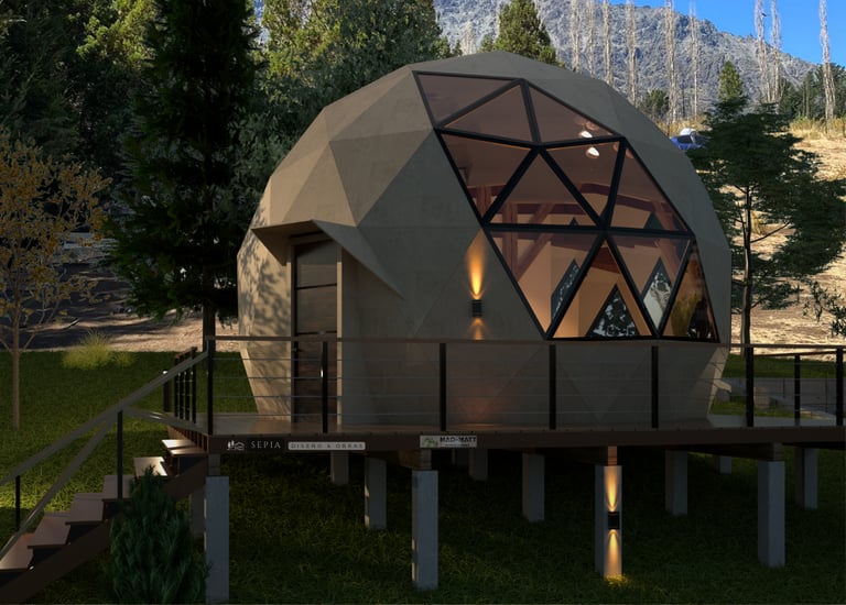 Bidomo geodésico en Bariloche. Naturaleza, diseño y sustentabilidad en armonía. Espacios únicos con vistas patagónicas y conexión total con el entorno.