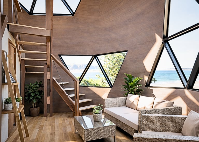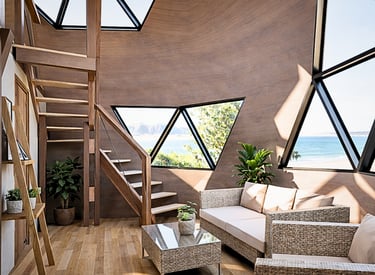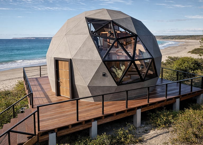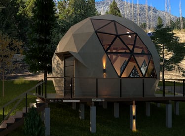 El diseño aprovecha la envolvente geodésica para lograr vistas, ventilación y un carácter arquitectónico único. Ideal para presentar a clientes, inversores o para avanzar hacia la construcción. Proyecto realista, funcional y estéticamente equilibrado.